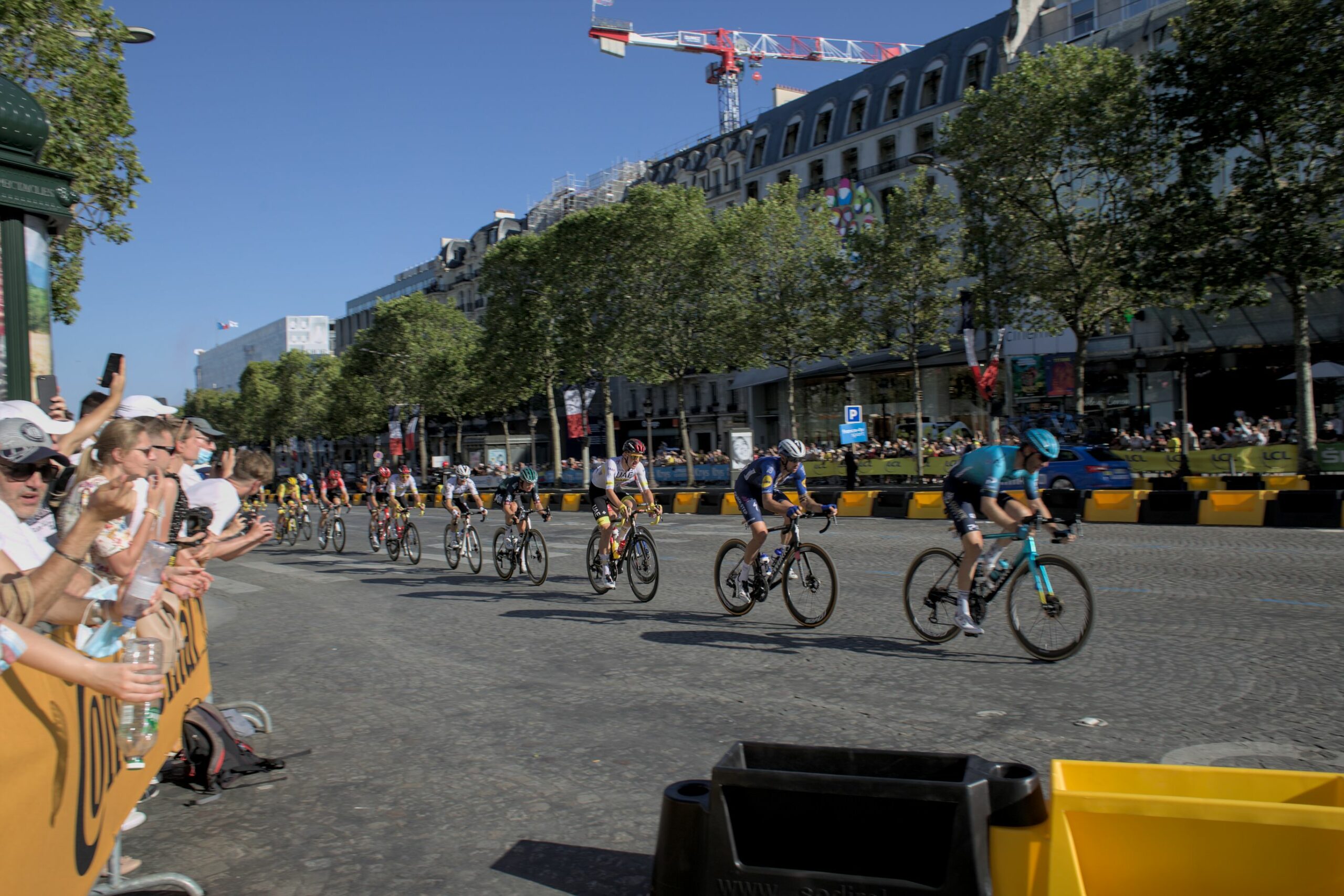 Als Camps d’Elisee es pot passar amb el passe sanitari només. Tot va començar amb unes voltes de ciclistas, després un gran grup de nens. Qui digui que Paris és majoritariament pla és perque no ha pujat des de la Plaça de la Concòrdia a l’Arc de triomf a les tres de la tarda el mes de juliol amb el paviment de coblestones. Tant dona si vas a 10km/h o 50, fa patir.