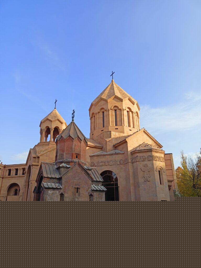 Wir hat gegangen um die Ecke, um Wasser zu kaufen, die Supermärkte dort sind bis 22 Uhr oder sogar bis Mitternacht geöffnet. Neben dem Supermarkt gab es eine schöne Kirche, es war schon spät, und es wäre bequemer, die Stadt bei Tageslicht zu erkunden. Bevor wir einschliefen, versuchten wir auf Google Maps zu sehen, von wo aus wir den Ararat sehen konnten. Von der Kaskade aus würde es möglich sein.