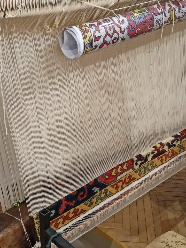 Bevor wir nach Zypern zurückfliegen, kauften wir einen armenischen Teppich! Irgendwie konnten wir ihn in den Rucksack packen und warteten auf einen Bus zum Flughafen.
