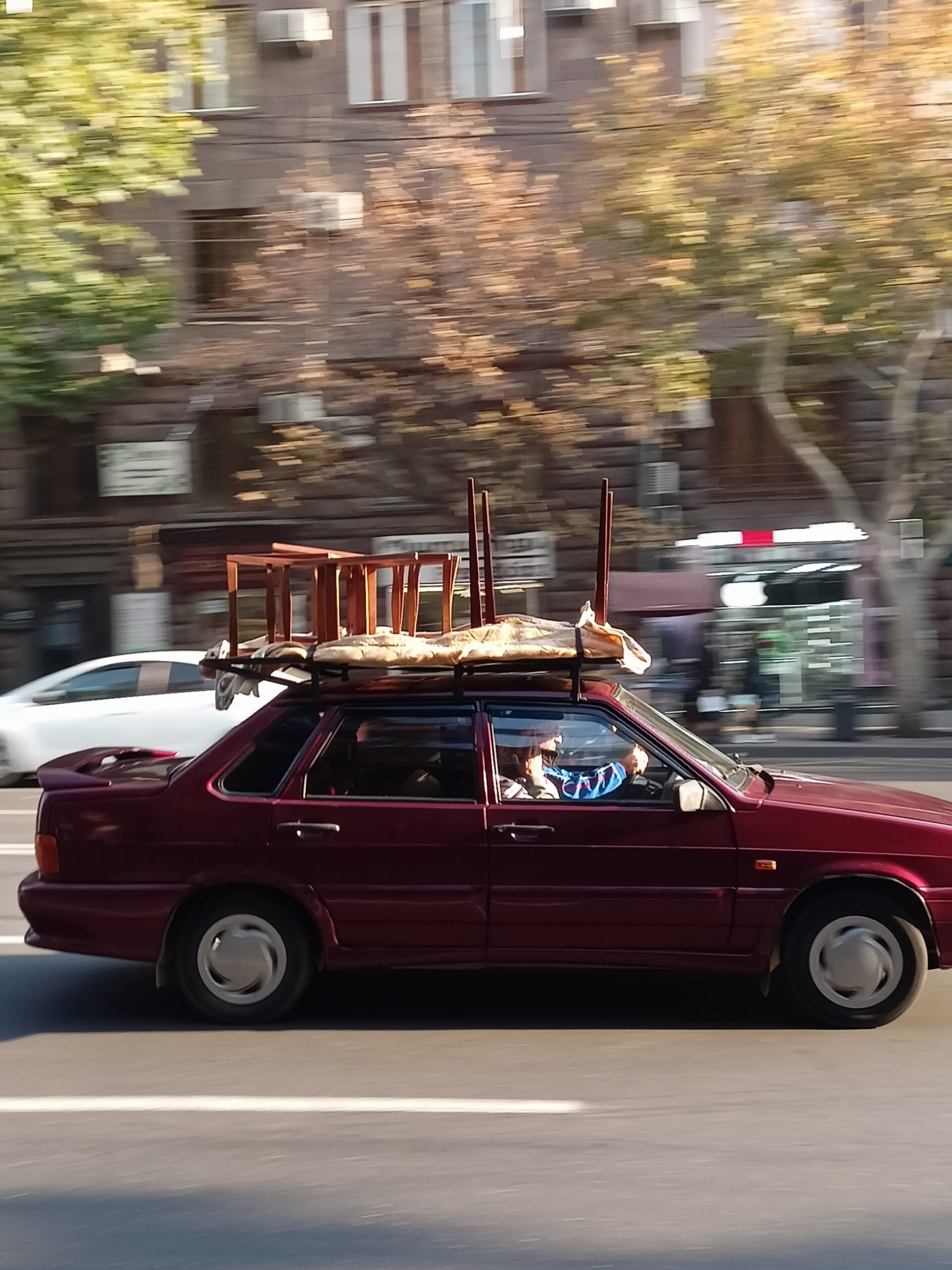 Wenn Sie sich vorstellen, wie die Bushaltestellen und öffentlichen Verkehrsmittel in Wien oder Barcelona sind, muss ich Sie enttäuschen. Es stellte sich heraus, dass auf der Strecke Yerevan – Flughafen nur ein Bus verkehrte! Ich hatte gehofft, diesen einen zu bekommen, um es den Einheimischen gleichzutun. Nach 45 Minuten haben wir aufgegeben und sind zum nahegelegenen Taxistand gegangen. Niki hat sich ein rotes Taxi ausgesucht, ich fragte, wie viel es bis zum Flughafen kosten wird und wir einigten uns auf den Preis. Niki stieg schnell ein und während ich versuchte, meinen langen Mantel- Shclafsack in das Taxi zu stecken, bemerkte ich, dass unser Taxler den Taxikasten vom Dach des Auto entfernt hatte, bevor er einstieg. Das heißt, wir waren in einem falschen Taxi in Yerevan! Während ich versuchte, mir vorzustellen, was als Nächstes passieren könnte und was wir dann tun sollten, erzählte unser Taxler bereits die Hälfte seines Lebens. Seit er fünfzehn war, hat er an drei Kriegen teilgenommen und für Armenien gekämpft. Da er schwer verletzt war, konnte er nicht mehr kämpfen, da die Ärzte aufgrund seines Gesundheitszustands von einer Teilnahme an der Front abrieten. Er sagte, sein Körper und Kopf bestehen aus vielen Metallteilen, aber er sei bereit zu kämpfen. Er hat seine Uniform und alles, was er braucht, um an die Front zu gehen! In diesem Moment wechselte mein Gesicht von weißer Farbe zu grün. Niki verstand nichts und schaute uns lächelnd an, während ich vorsichtig nach einigen Details fragte. Gleichzeitig überwachte ich Google Maps, um zu sehen, ob unsere Richtung richtig war. Ich glaube, diese 20 Minuten waren die längsten in meinem ganzen Leben!